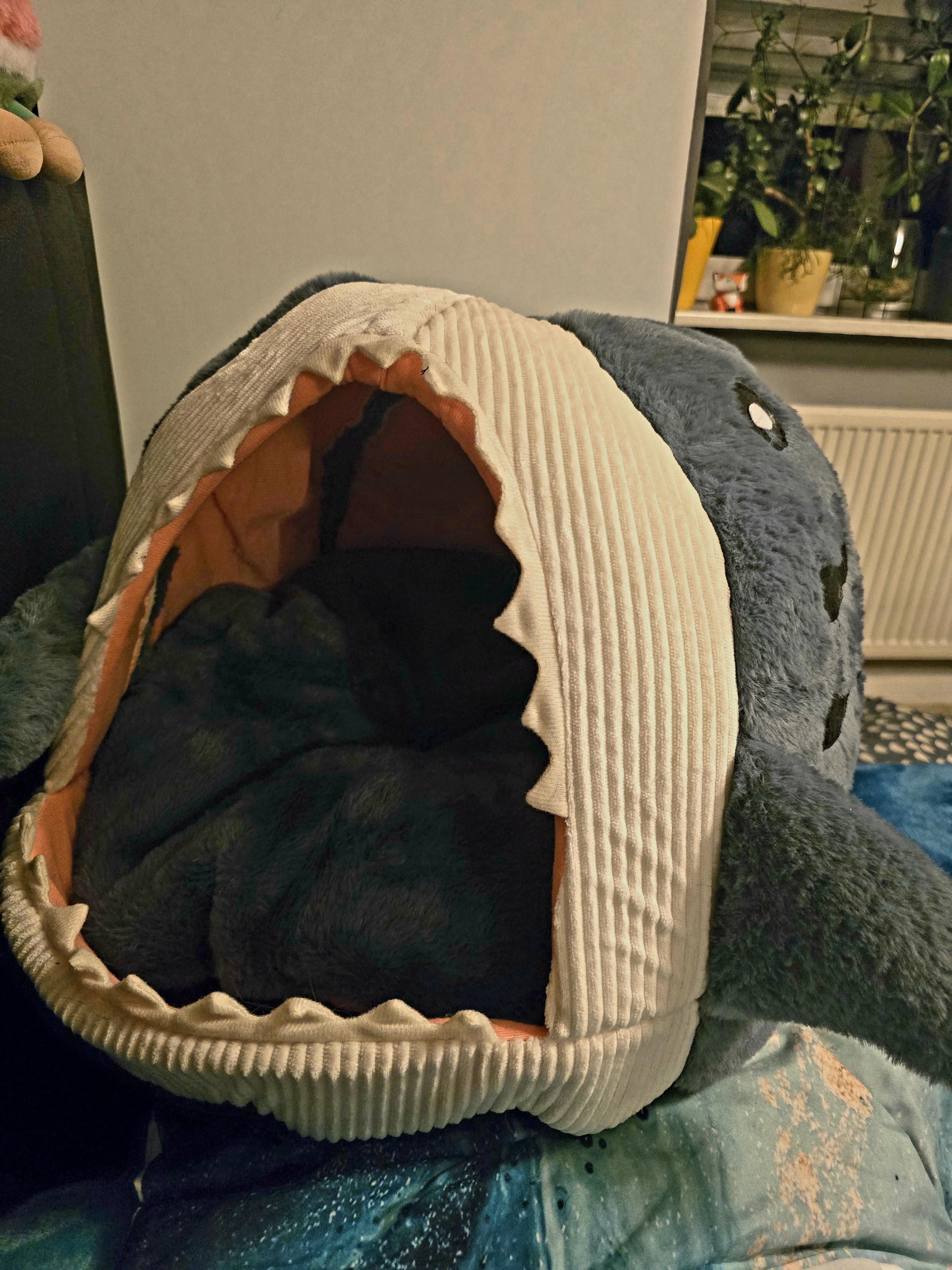 Da ich auf eine einsame Insel auch meine Hunde mitnehmen würde, dürfte auch das Hai-Körbchen von Nala nicht fehlen 😁🐋